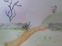 Today was our home school library group. I lined up a visitor, Jerry Lindsay, our local National Parks artist in resident to come and talk to our group about water color art. He taught us how to make a sunset/sky and the idea of using silhouette in ones paintings.